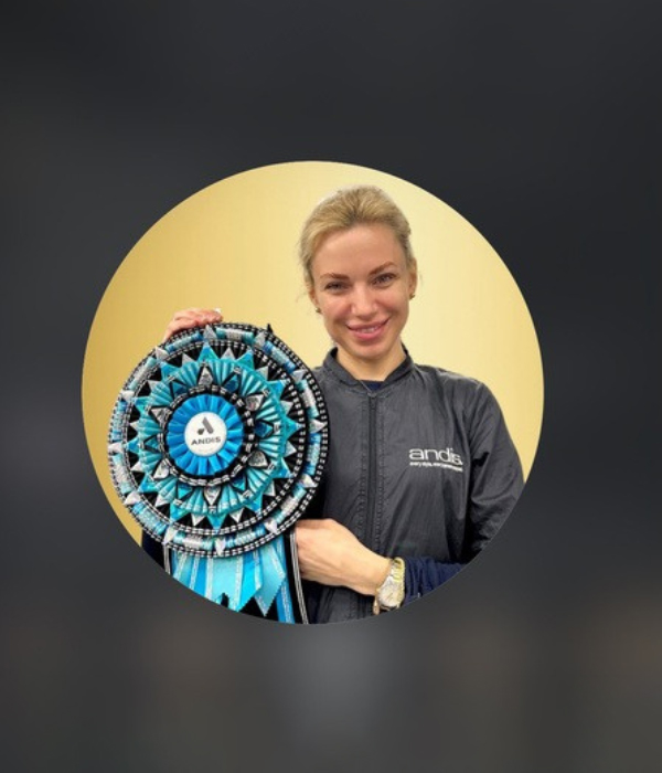 Originally from Ukraine, she began her career as a veterinarian before transitioning to professional grooming in 2006.